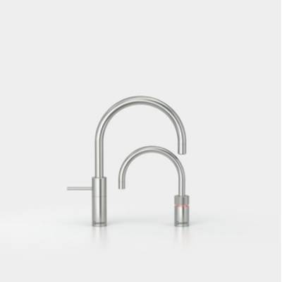 Quooker Nordic Round Twin Taps RVS avec Réservoir Combi (Eau bouillante et d'eau chaude limitée) et Cube (Eau fraîche, pétillante et filtrée)